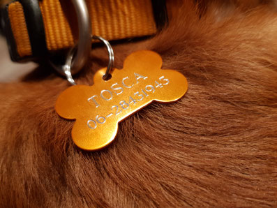 Tip: gaat u vaak met uw hond naar het buitenland en wilt u uw telefoonnummer op de penning, plaats dan +31 6 98 76 54 32.